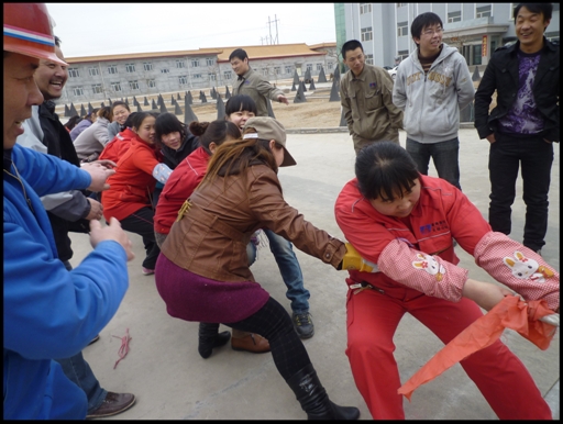 本次比賽活動,共12個單位參與,組建6支隊,分為4個組,展開淘汰賽,最終由安全生產(chǎn)部、計劃財務部組隊員全勝。比賽結(jié)束后,隊員們意猶未盡,隨即又展開了一場女子拔河比賽。在比賽過程中,天琛公司女職工們發(fā)揚了不怕苦、不怕累的風格,在風雨中頑強拼搏,贏得了現(xiàn)場觀眾的一致好評。通過這次比賽,充分展現(xiàn)了女職工的颯爽英姿,豐富和活躍了女職工們的業(yè)余文化生活,濃厚了節(jié)日氣氛。